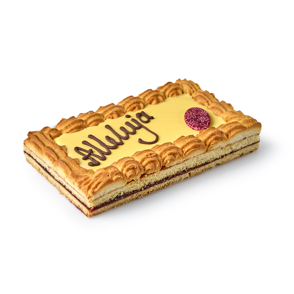 Mniejsza wersja naszego klasycznego mazurka. Mazurek z maślanym spodem, przełożony marmoladą, kremem, z czekoladą ciemną i białą oraz dekoracjami cukrowymi.